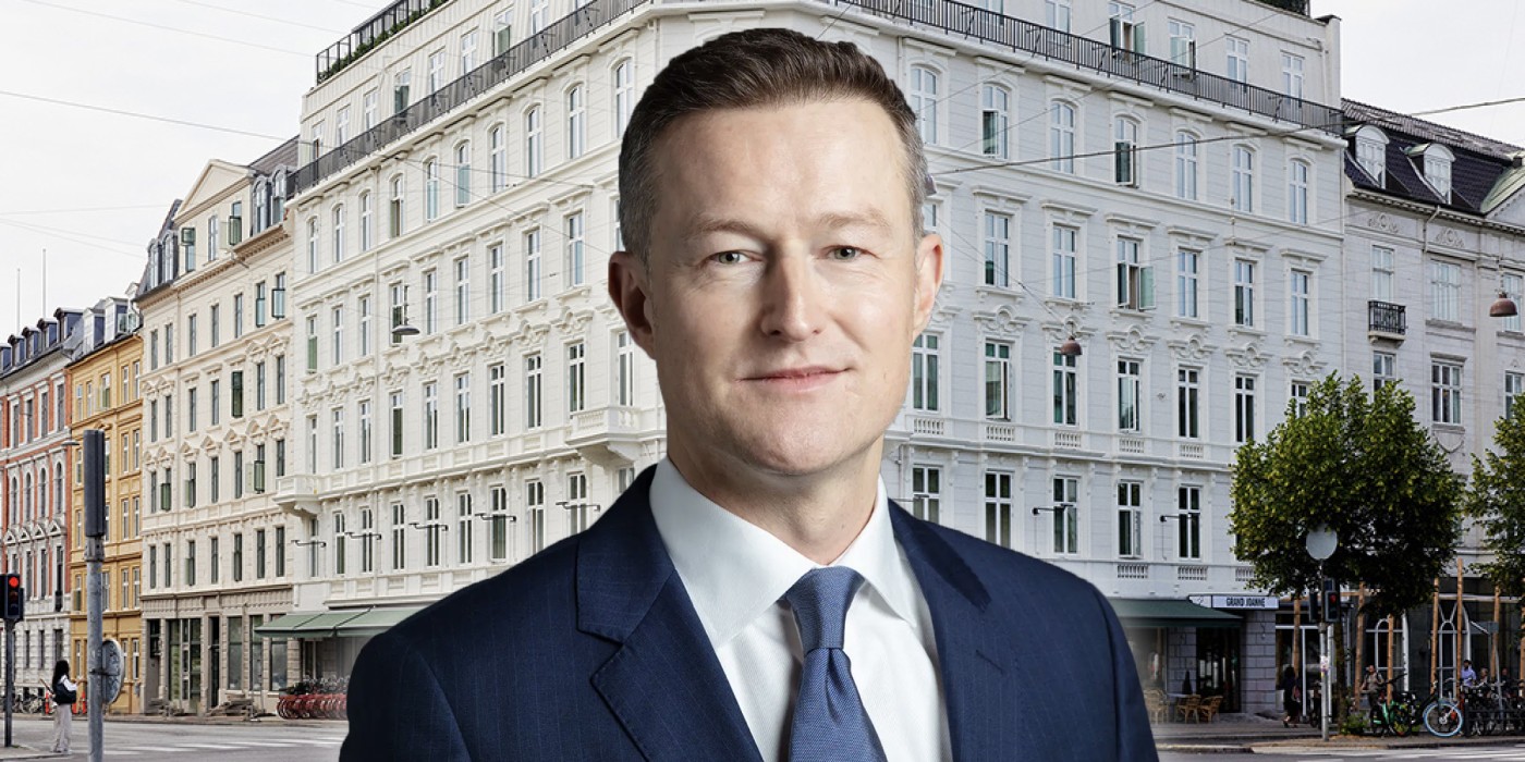 Thomas Laakso in front of the Grand Joanne hotel property in Copenhagen. The image is a montage.