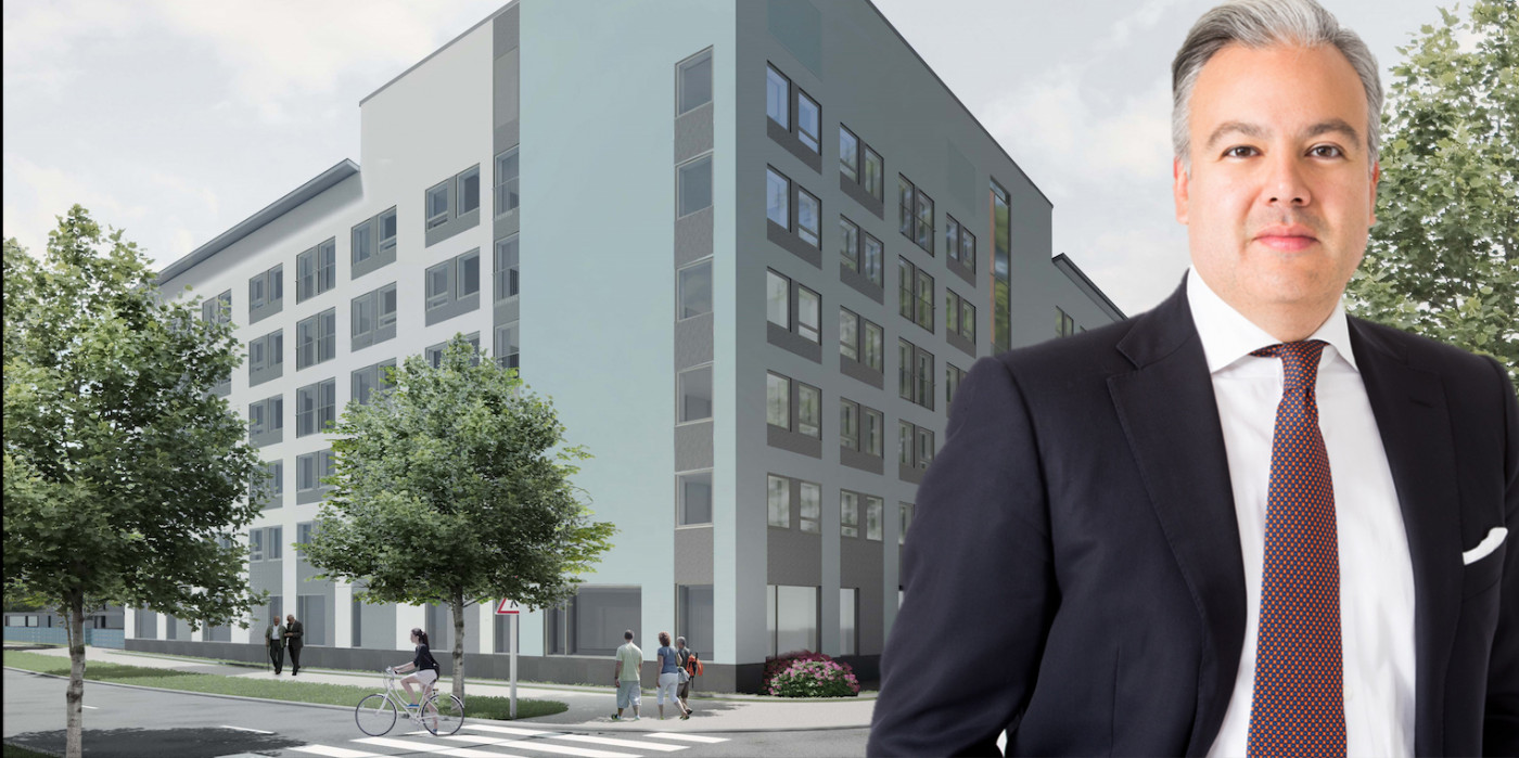 Nils Styf, CEO of Hemsö. In the background: One of the projects in Finland.