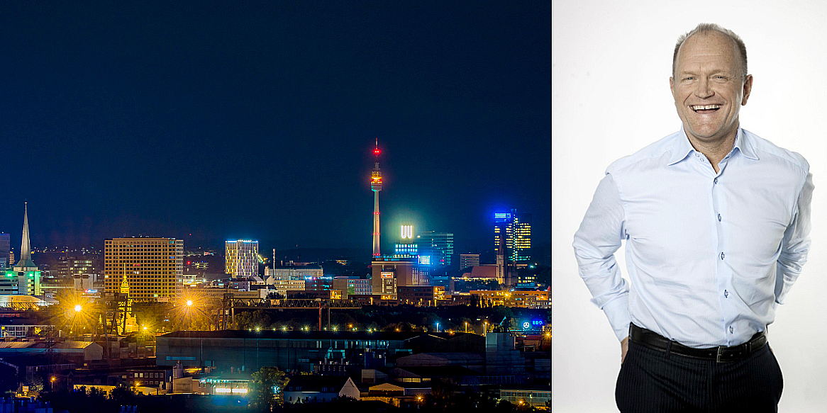 Dortmund skyline and Pandox's CEO Anders Nissen.
