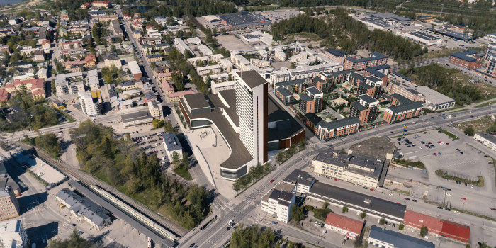 The plan for Wasa Station is to create a meeting place and event centre that includes a music and congress centre as well as sports and multipurpose facilities. The tower at the southern end of the block will consist of a hotel with approximately 100 apartments above it.