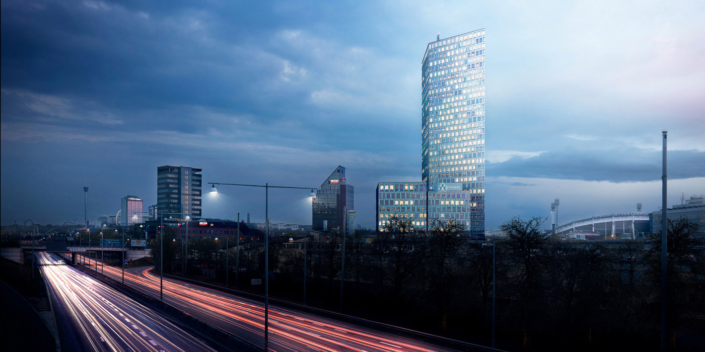 Construction of the Citygate is in progress. The office building will be 36 storeys, corresponding to 144 meters, and will have a total lettable area of approximately 42,000 square meters. The project takes on extensive social responsibility to combat exclusion and promote employment. Activities such as collaboration with schools, homework help and mentoring are already in full swing.