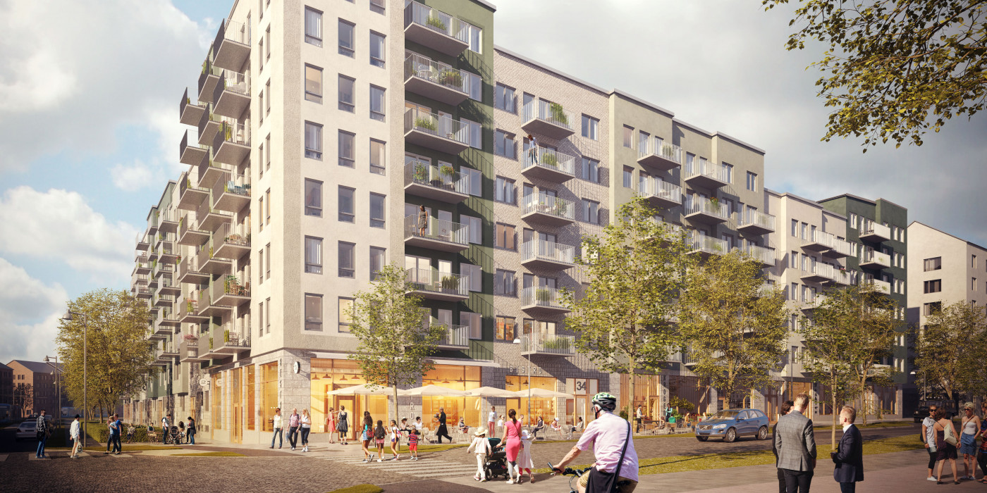 This is Magnolia Bostad's first project in Sundbyberg. About 380 residential units are planned for the neighbourhood and a nursery school for around 75 children. Magnolia Bostad also plans retail premises in connection with the residencies and 168 garage spaces. The buildings will be certified in accordance with the Swedish Green Building Council’s silver certification.Great care has been taken regarding details and materials in the project, which was designed by Lindberg Stenberg Arkitekter. The property is divided by two high porticos and has varying facades combining restaurants, residencies, a nursery school and retail premises. This variety is held together by a clear design, and blends into the central square of the new Ursvik town centre in a natural way.