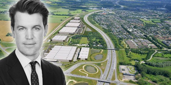 Peter Michael Tetzlaff in front of Verdion's E20 Park Copenhagen. The image is a montage.