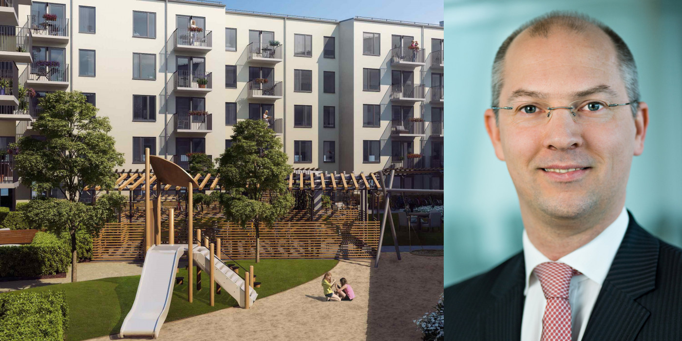 Jörg Laue and Patrizia's latest residential investment in Sweden. The image is a montage.