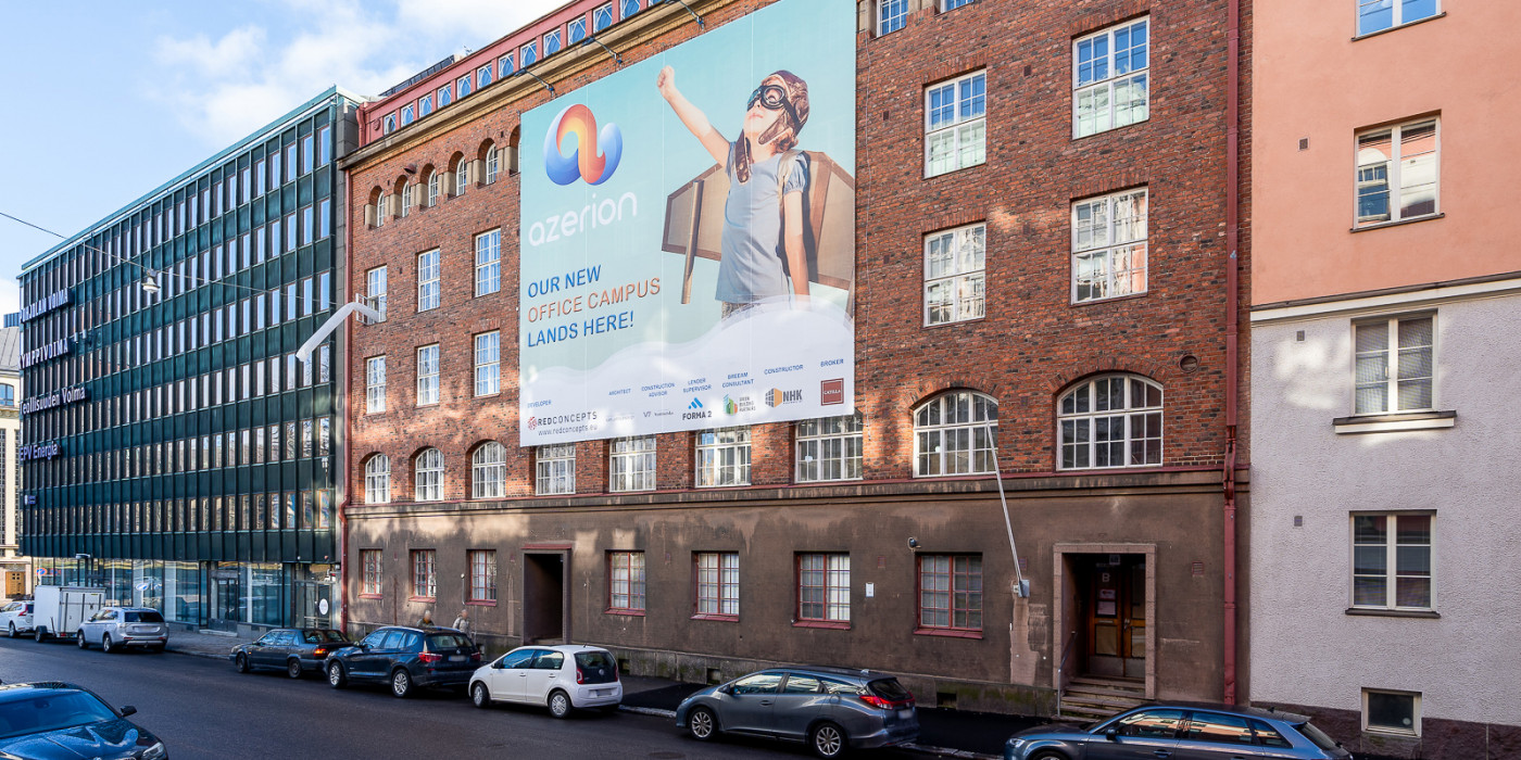 Built in 1924 and designed by renowned Finnish architect Lars Sonck, the historic property is located in Helsinki’s Töölö quarter, near the central business district. It was originally used as a printing works. Having been used as an office building by the City of Helsinki for many years, the property was fully renovated to modern standards by RED Concepts in 2020/2021 for the new tenant Sulake. Refurbishment was completed in February 2021. The goal is to achieve certification to at least BREEAM (Building Research Establishment Environmental Assessment Methodology) ‘Good’ standard.