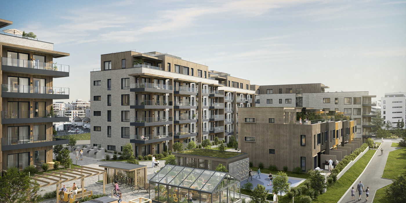 Humlehagen is located in Gladengveien in Ensjø, immediately adjacent to Tiedemannsbyen where Ferd Eiendom, in cooperation with partners, has developed 1,200 homes. Social meeting places are a key part of the project, and the courtyard will be developed with greenhouses, pergola and its own bicycle shelter with bicycle washing and the possibility of simple servicing jobs. The project consists of 133 apartments and nine townhouses, and more than 50% have already been sold.
