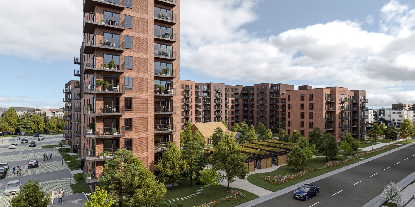 The project is located in central Herlev near the train station and the upcoming light rail stations to Copenhagen. It covers 22,720 square meters and will consist of 264 rental apartments accompanied by as many parking spaces surrounding the building, which will all be prepared for loading stations for electric cars.